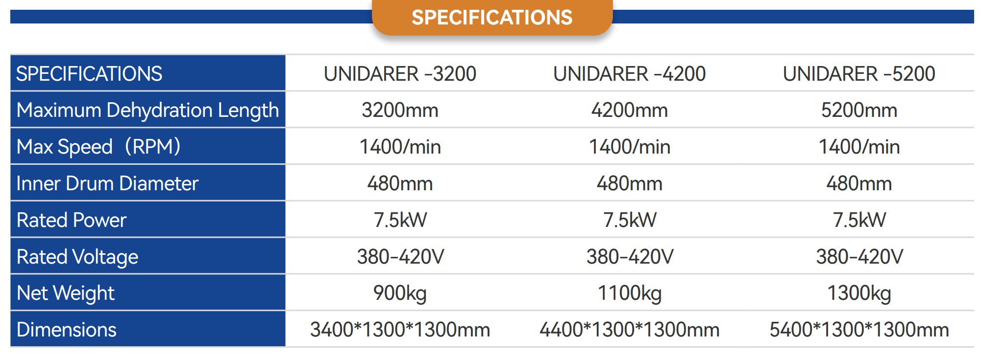 UNIDARER -3200Maximum Dehydration Length :
